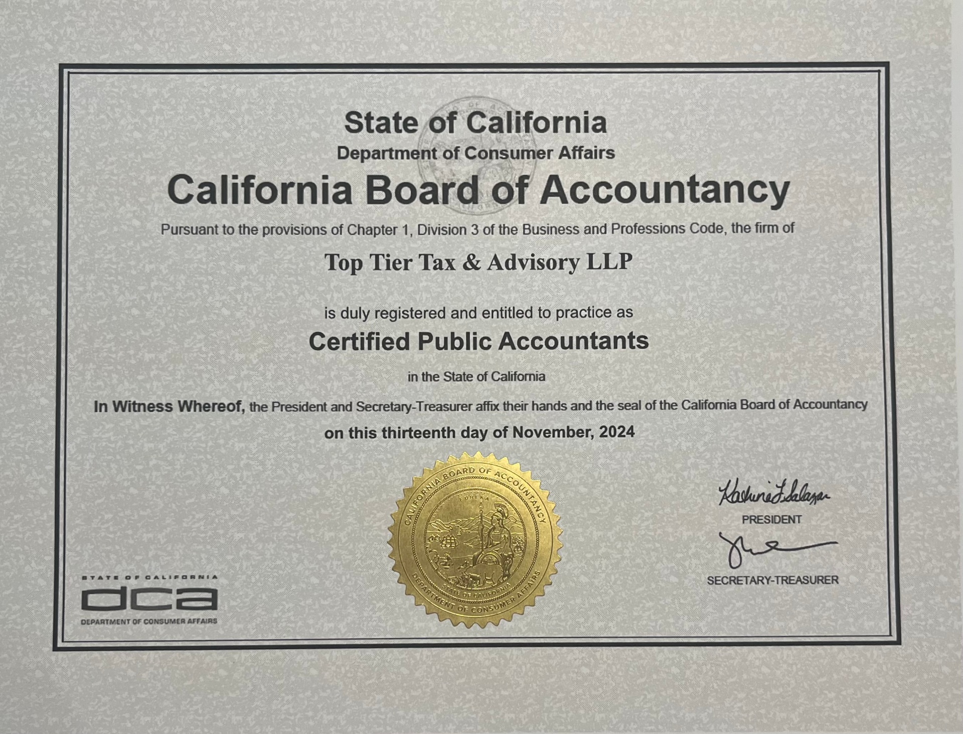 As a business owner and investor, I understand the complexities and frustrations of the U.S. tax code faced by both businesses and individuals. I’m here to guide you through even the most challenging scenarios with confidence. I am a CPA licensed in California and the founder of Top Tier Tax & Advisory LLP, a leading firm in the field.